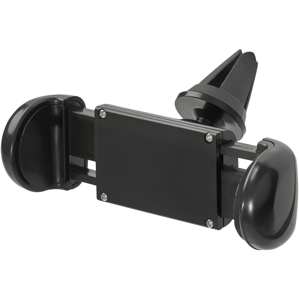 Telefontartó, amely az autó műszerfalának szellőzőnyílására rögzíthető, és biztonságos helyzetben tartja a mobiltelefont. Minden telefonnal kompatibilis. 360 fokban elforgatható.