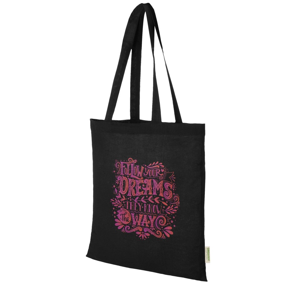 OCS tanúsítvánnyal rendelkező, 100% organikus pamutból készült bevásárlótáska környezetbarát és praktikus megoldás a mindennapokra. A termék egy tágas, nyitott főrekesszel rendelkezik, amely bőséges helyet biztosít az alapvető kiegészítők számára, a 32 cm hosszú fülek pedig kényelmes hordozhatóságot tesznek lehetővé bárhová is megy. A táska teherbírása legfeljebb 5 kg. Űrtartalma: 7 liter. 140 g/m2 anyag.
