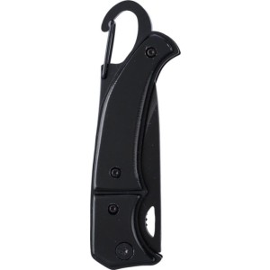 Zsebkés biztonsági zárral, alumínium nyéllel és fém karabinerrel. Figyelmeztetés: a karabiner nem alkalmas hegymászásra. Egyenként barna kartondobozba csomagolva. Anyaga: rozsdamentes acél.