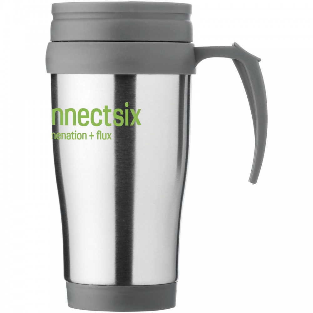 A Sanibel tökéletes bögre italok fogyasztásához útközben. A bögre dupla, szigetelt falú, így sokáig melegen tartja az italokat. A csavaros, elcsúsztatható fedél megkönnyíti az ital fogyasztását. Az ergonomikus hüvelykujjtámaszú fogantyú jó fogást biztosít. A Sanibel bögre rozsdamentes acélból és fekete műanyagból készült, így nagyon erős, korrózióálló és könnyen tisztítható. Nem szivárgásmentes. Szénsavas italokkal is használható. Mosogatógépben nem mosható és mikrohullámú sütőben történő melegítésre nem alkalmas. Űrtartalom: 400 ml.