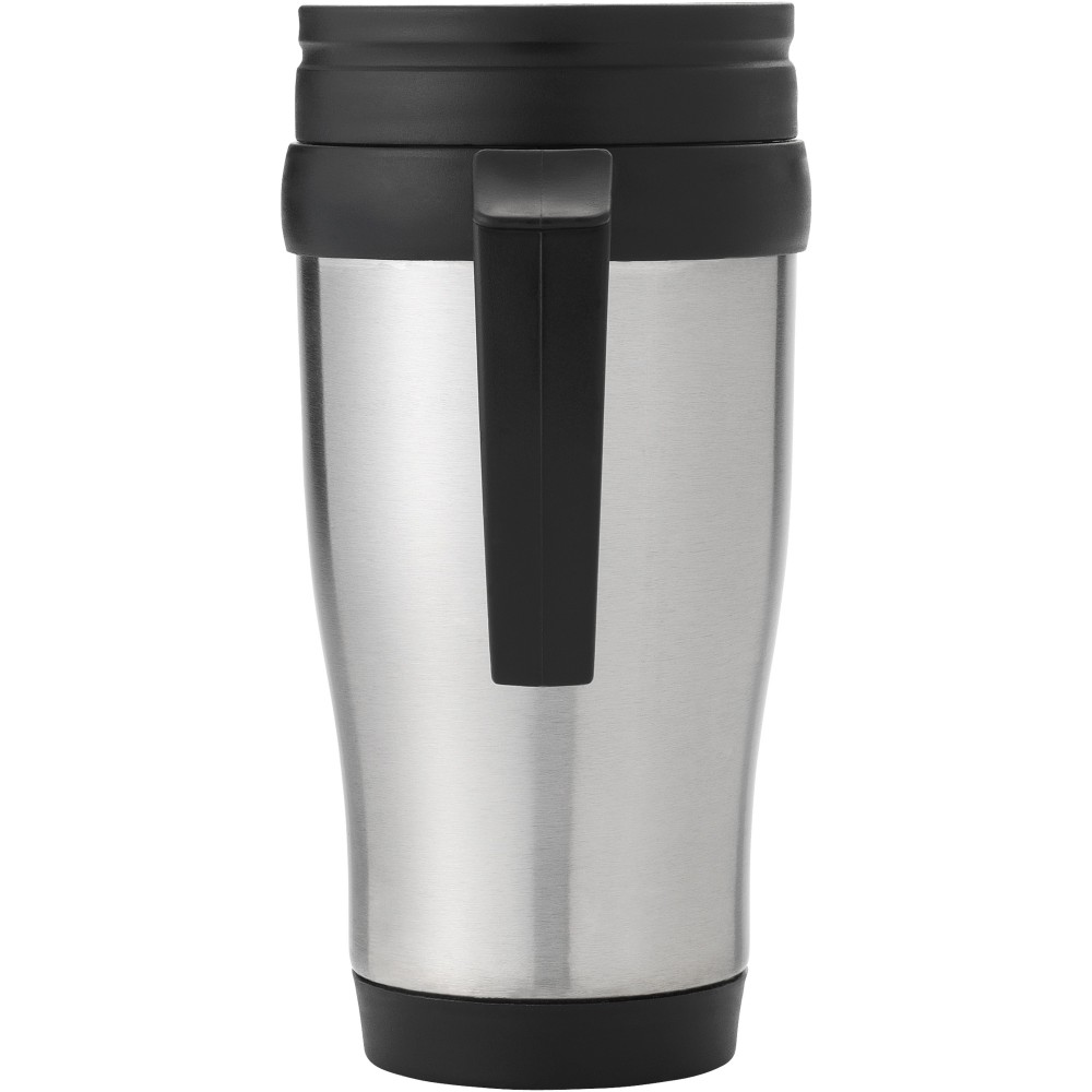 A Sanibel tökéletes bögre italok fogyasztásához útközben. A bögre dupla, szigetelt falú, így sokáig melegen tartja az italokat. A csavaros, elcsúsztatható fedél megkönnyíti az ital fogyasztását. Az ergonomikus hüvelykujjtámaszú fogantyú jó fogást biztosít. A Sanibel bögre rozsdamentes acélból és fekete műanyagból készült, így nagyon erős, korrózióálló és könnyen tisztítható. Űrtartalom: 400 ml.