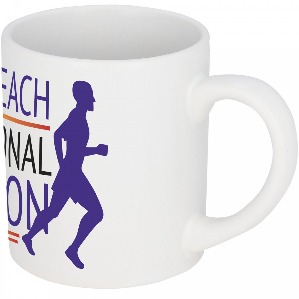 Kompakt stílusú szublimálható kerámia bögre. Nem szivárgásmentes. Szénsavas italokkal is használható. Mosogatógépben nem mosható, de mikrohullámú sütőben történő melegítésre alkalmas. Űrtartalom: 210 ml. Csomagolása fehér kartondoboz.