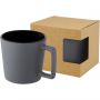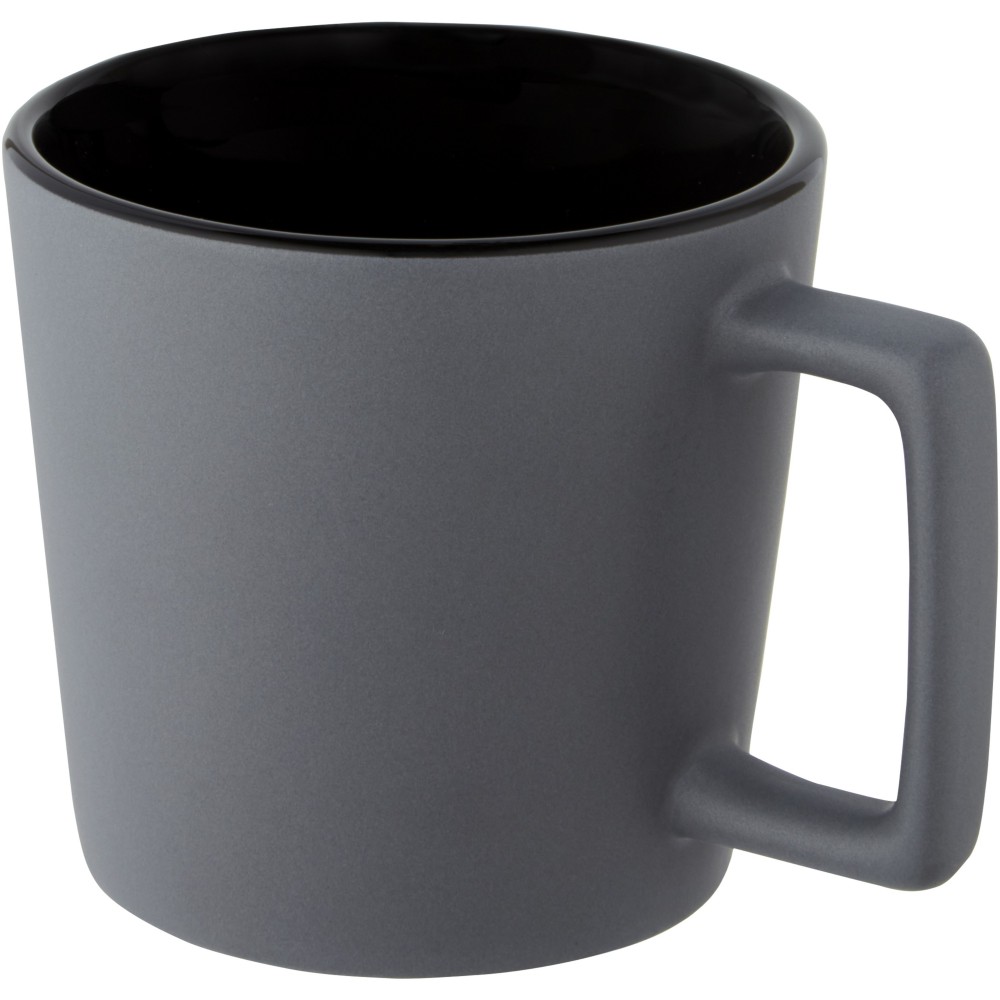 Kerámia bögre modern dizájnnal és matt felülettel. Nem szivárgásmentes. Szénsavas italokkal is használható. Mosogatógépben mosható és mikrohullámú sütőben történő melegítésre alkalmas. Űrtartalom: 370 ml. Újrahasznosított karton díszdobozban.