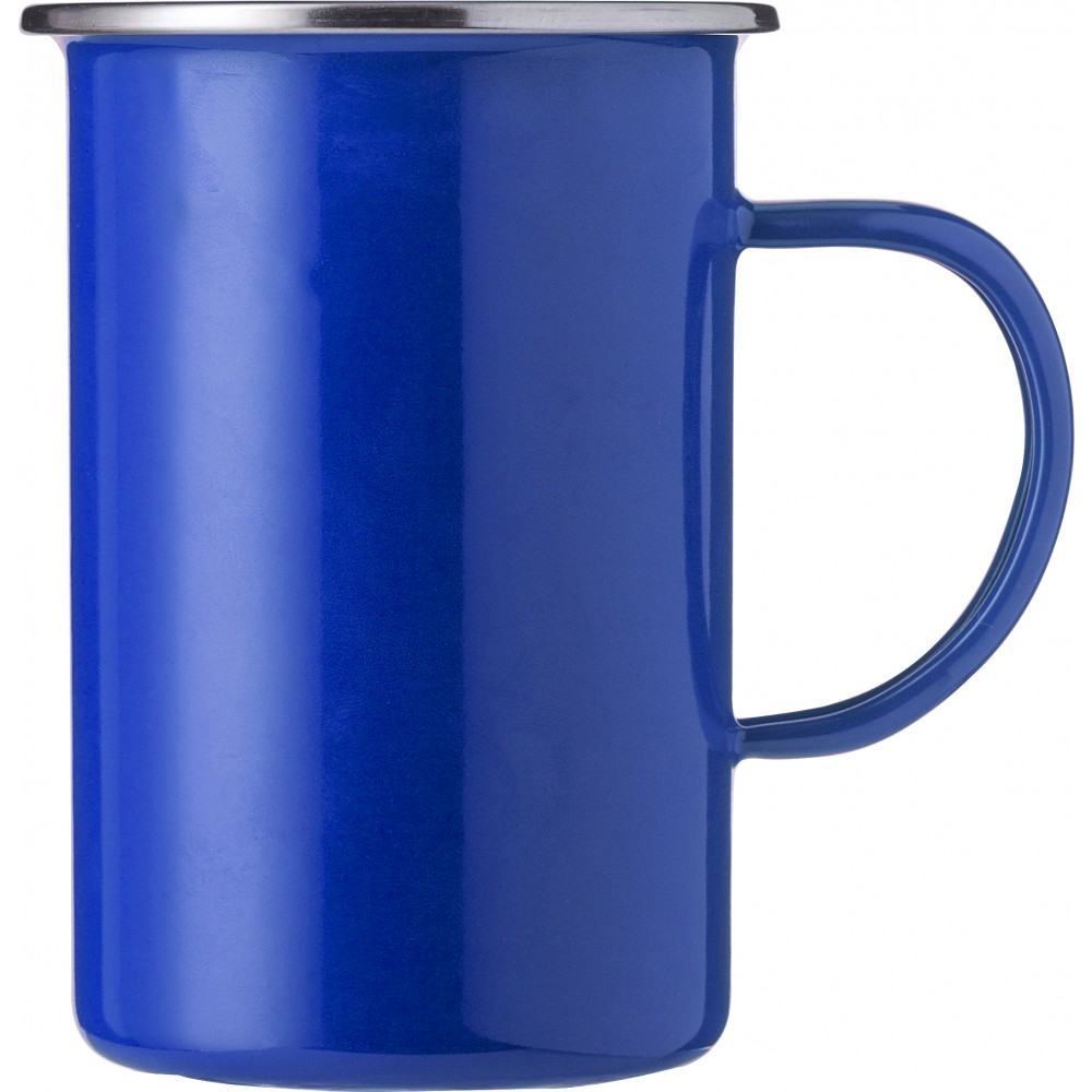 Zománcozott bögre rozsdamentes acél peremmel. Űrtartalom: 450 ml. Csomagolása barna kartondoboz.