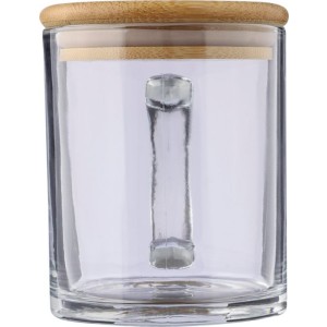 Bögre nátrium-kalciumból készült, bambusz fedéllel, amely poháralátétként is használható. Egyenként barna kartondobozba csomagolva. Anyaga: újrahasznosított üveg. Űrtartalom: 300 ml.