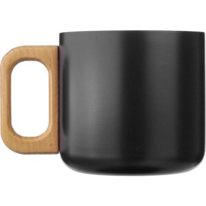 Duplafalú bögre fa fogantyúval. Mosogatógépben nem mosható. Gravírozott újrahasznosított rozsdamentes acél logóval. Egyenként barna kartondobozba csomagolva. Anyaga: újrahasznosított rozsdamentes acél. Űrtartalom: 400 ml.