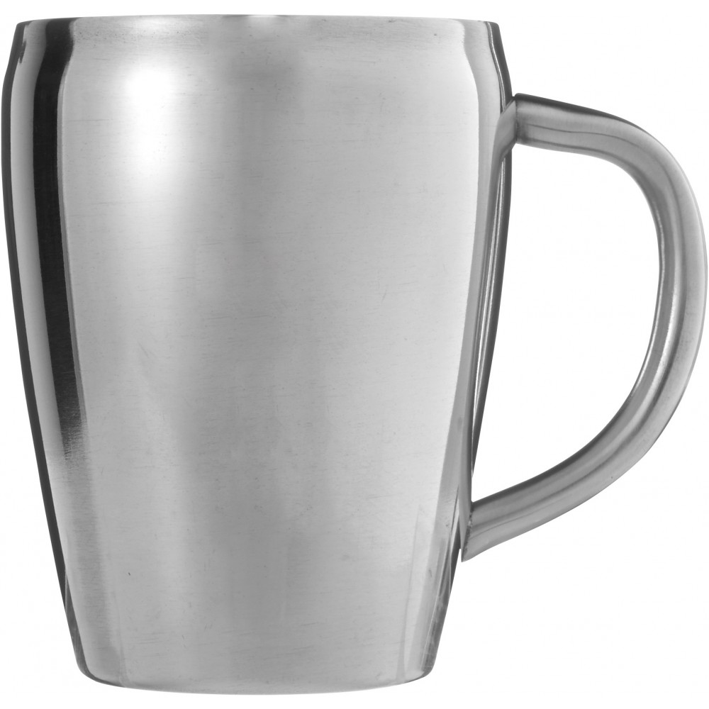 Rozsdamentes acél bögrekészlet. Mosogatógépben nem tisztítható. 200 ml.
