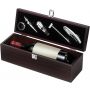 Bortartó fadoboz 0,75 l-es borosüveg számára, 5 db-os borosgazda készlettel. (Bor nélkül.)