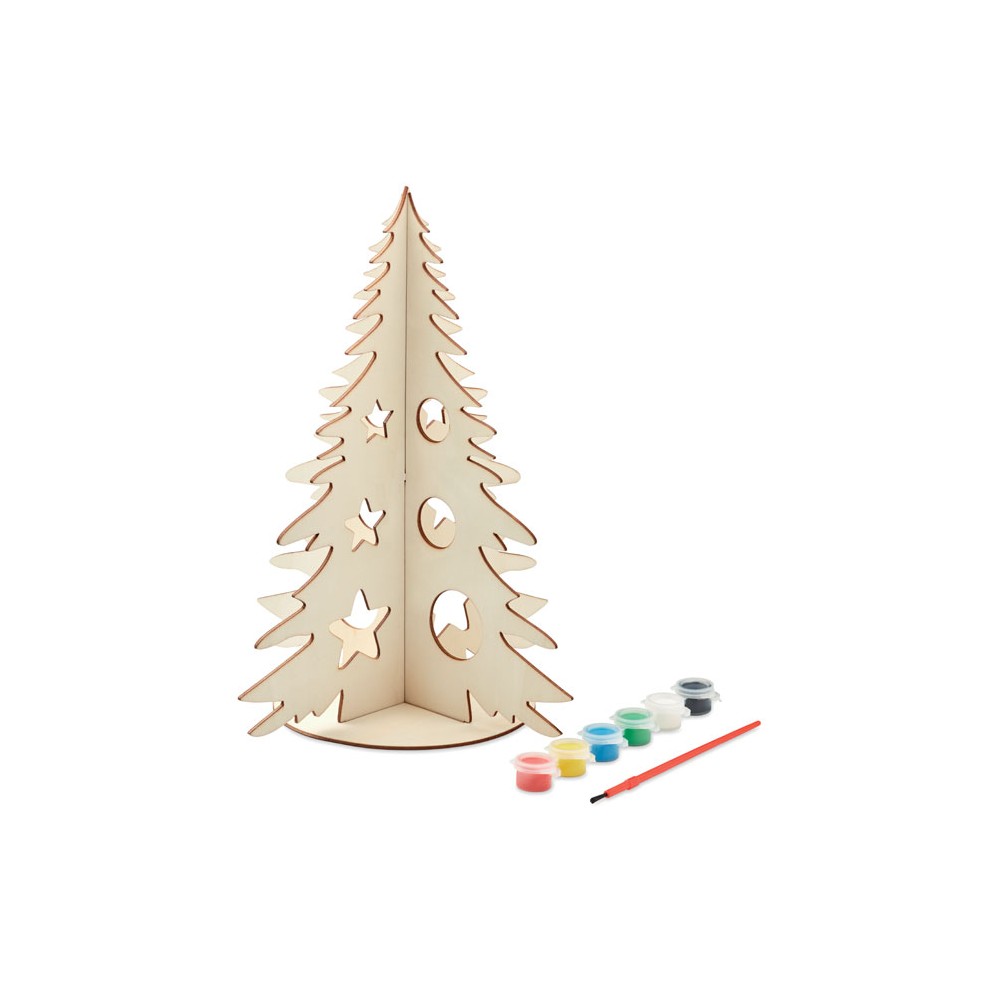 Csináld-magad fából készült karácsonyfa asztali dísz, 6 színű vízfestékkel és ecsettel. Összeszerelést igényel.