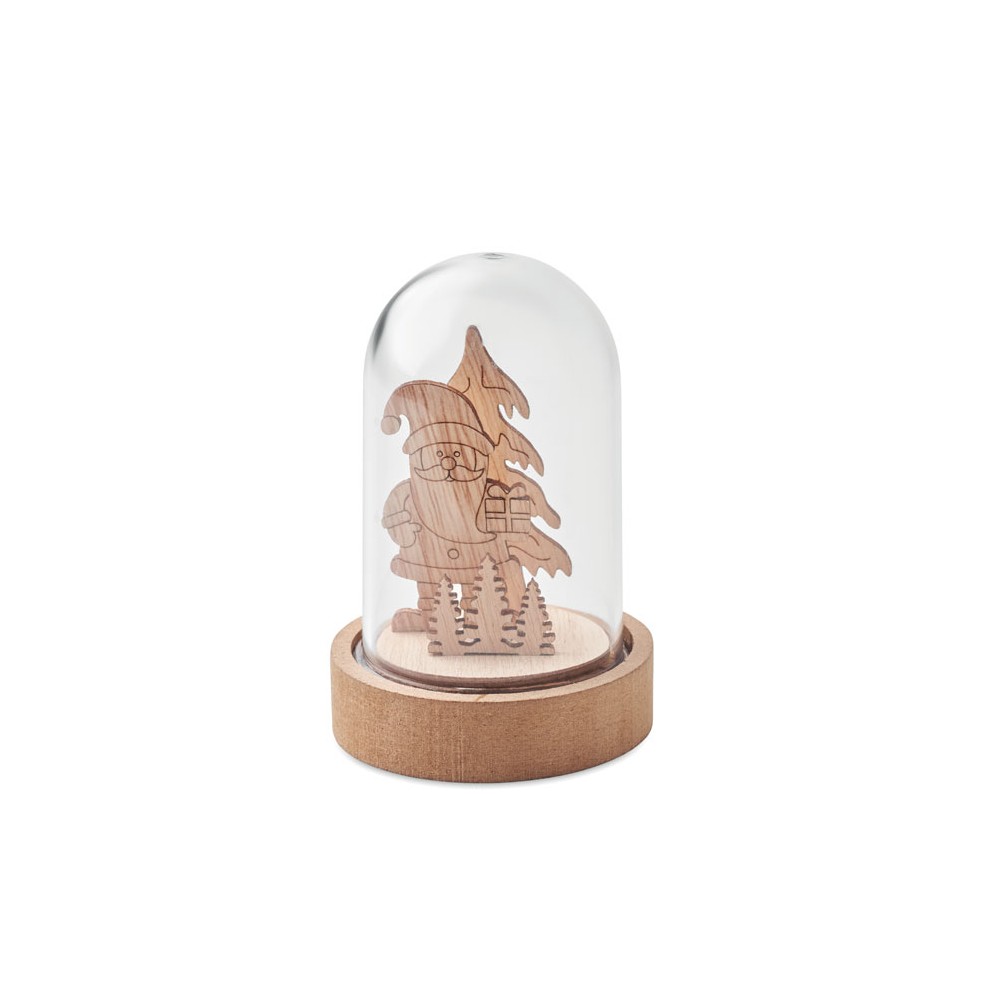 Karácsonyi dekoráció MDF-ból, PET házban, 1 LED fénnyel. A működéshez szükséges 3 db gombelemmel szállítjuk.