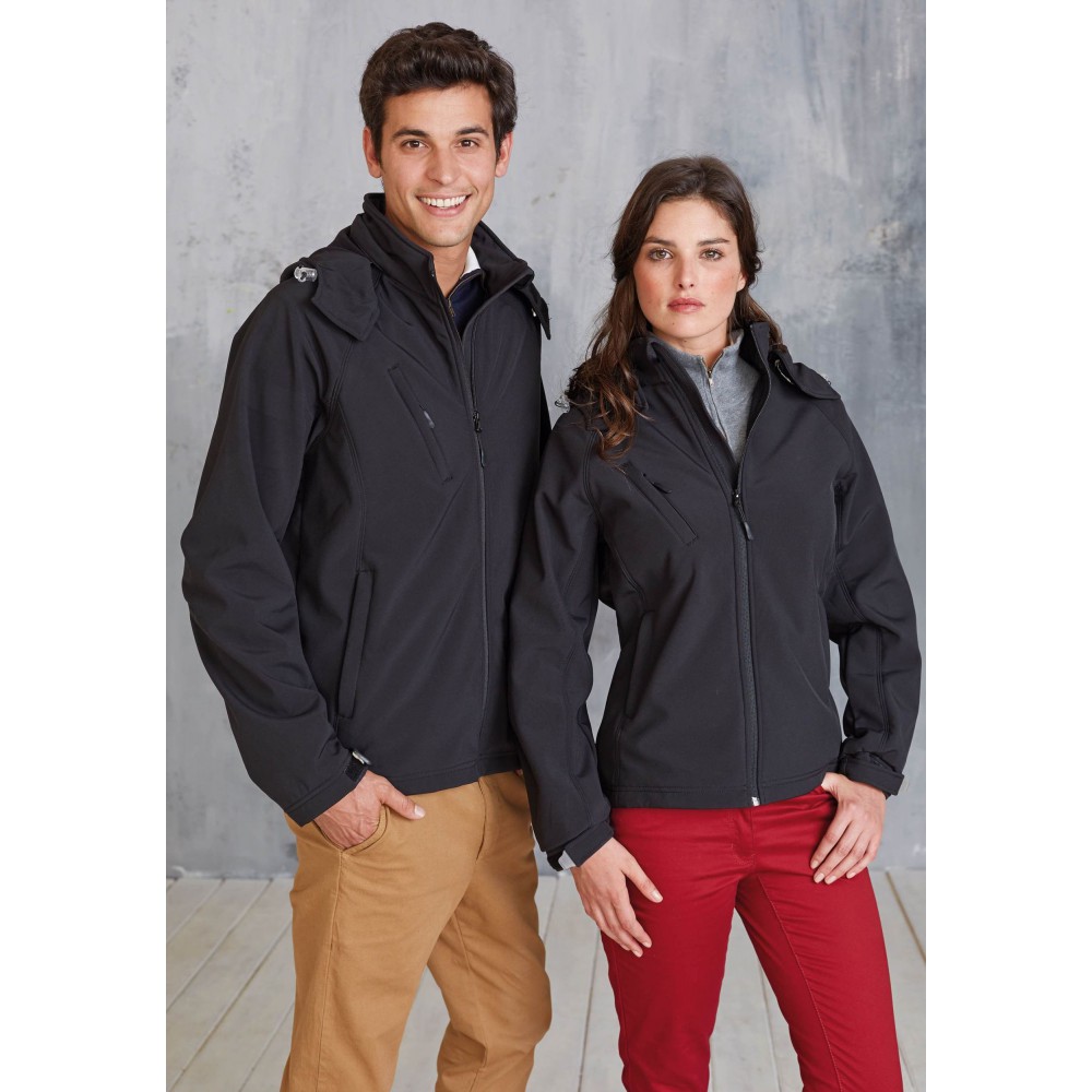 3 rétegű préselt anyag. 1000 g/m2/ 24 órás lélegző és 5000 mm vízálló funkció. Külső réteg 94% poliészter és 6% elasztán. A középső réteg vízálló membrán, Bolyhosodásmentes mikropolár belső réteg. Két cipzáras oldalzseb és egy mellzseb, levehető kapucni, húzózsinór a kapucniban és a derékrészen, tépőzáras, állítható kézelő, belső cipzár az emblémázás megkönnyítésére. 340 g/m2. S-3XL. Bizonyos színek 4XL méretig kaphatóak.