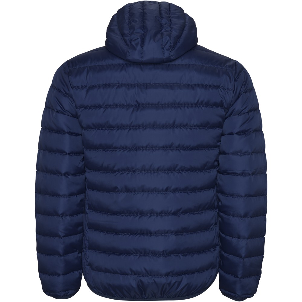 Pehely tapintású férfi steppelt dzseki kapucnival, tasakkal. Fordított cipzárakkal, hozzá illő állvédővel. Két cipzáras elülső zseb. Gumis kézelő, a alj- és a kapucniszegély. Kontrasztos belső bélés. Könnyű és összehajtható ruhadarab. Vízálló. Szélálló modell. 100% poliészter, 290 g/m2. Bélés: 100% poliészter. Töltet: 100% poliészter.