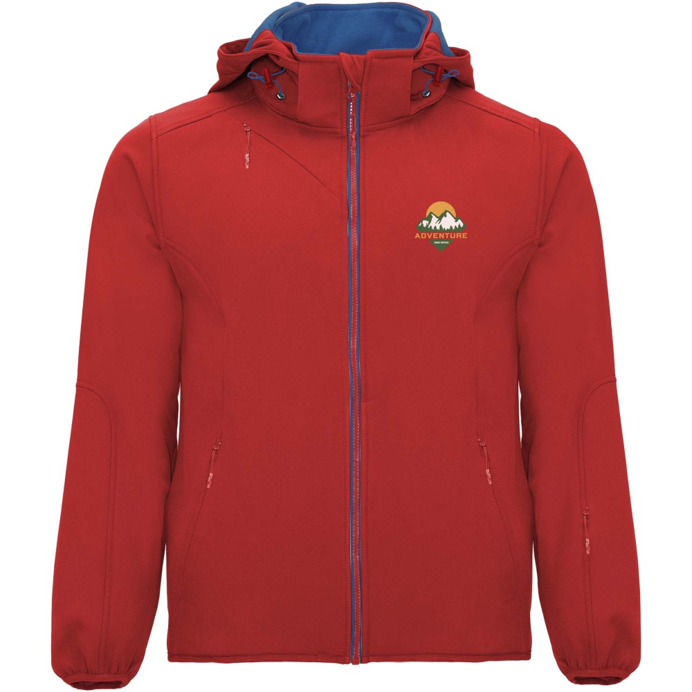 2 rétegű softshell dzseki. Kontrasztos színű cipzár és állvédő. Belső bélés kontrasztos mikropolár anyagból. Külső zseb a jobb mellkason átlós alakú rejtett cipzárral. Két oldalzseb rejtett cipzárral. Zseb a bal ujjon. Megfelelő gumis szegély a kézelőn és az aljon. Behajtható kapucni kontrasztos színű mikropolár béléssel. Vízálló. Szélálló. 92% poliészter és 8% elasztán, 300 g/m2. Bélés: 100% poliészter mikropolár.