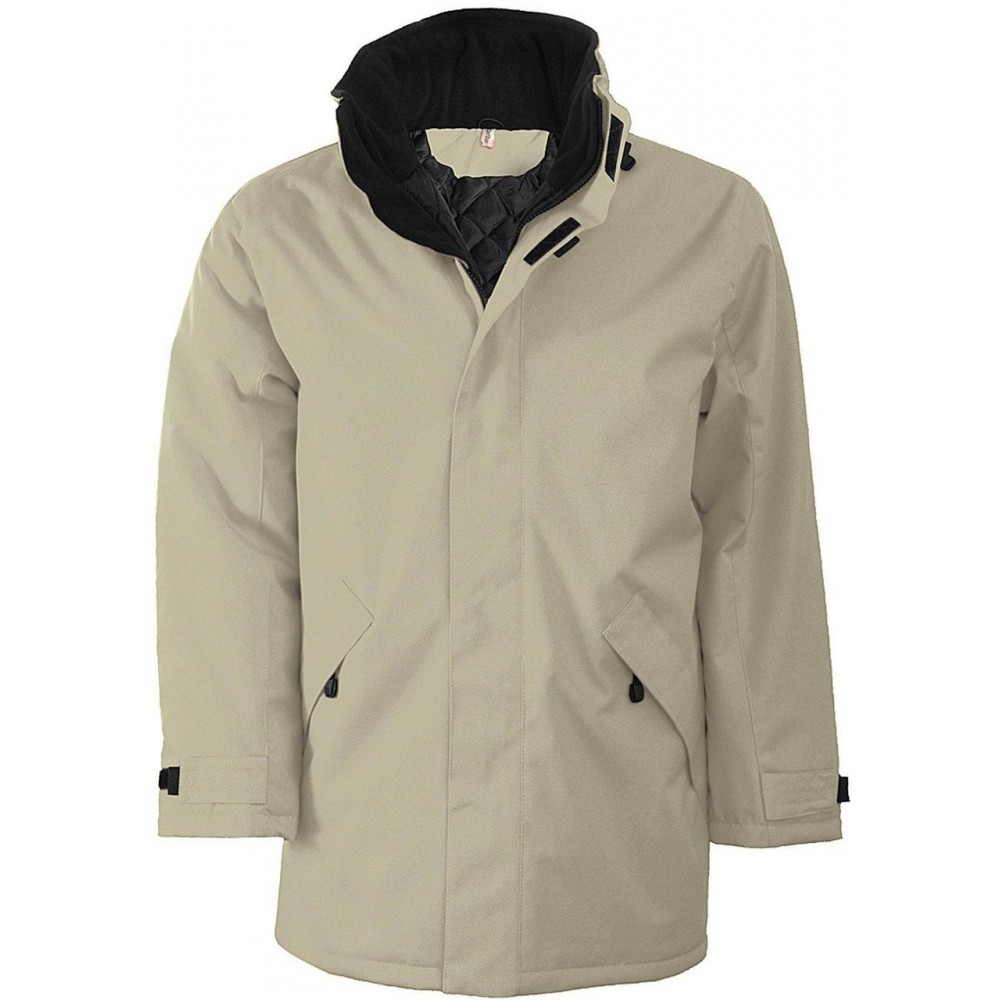 100% poliészter Oxford külső anyag, poliészter töltés és bélés. Viharálló, tépőzáras gallér, rejthető kapucni polár béléssel, nagy, tépőzáras belső zseb, két cipzáras oldalzseb, belül mobiltaró zseb, tépőzárral állítható kézelő, emblémázás számára kialakított bélés. 450 g/m2. XS-3XL. Bizonyos színek 4XL méretig kaphatóak.