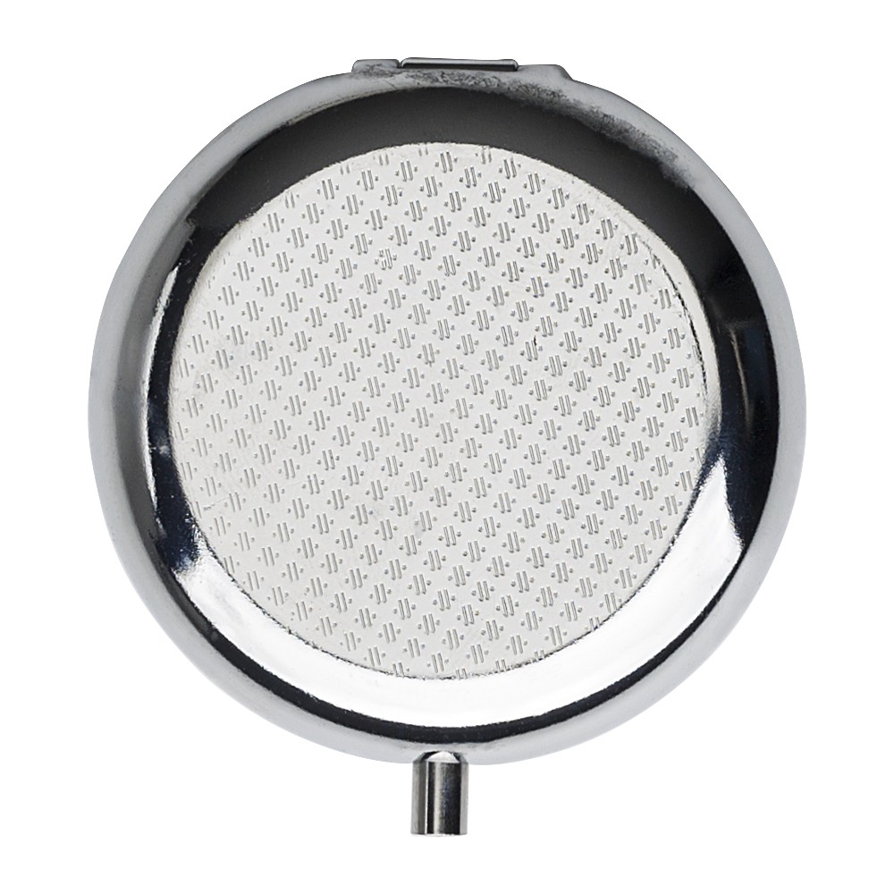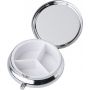 Fényes gyógyszeresdoboz 3 rekesszel. Belül PP műanyag. A fedél belsejében tükör található. Csomagolása: fehér doboz.