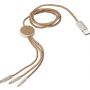 Parafa töltőkábel. Töltőkábel hossza kb. 1,20 m. USB-A/USB-C / Lightning, típus-C / mikro-usb. A dugaszok szalma felhasználával készültek. Kraft dobozba csomagolva.