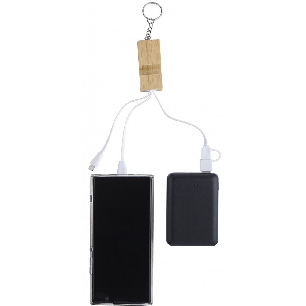 Bambusz telefontartó töltőkábelekkel, barna