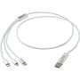 Ez a kábel USB-A és Type-C bemeneti csatlakozóval, valamint Type-C, Micro USB és Lightning/Micro USB kombinált kimeneti csatlakozóval rendelkezik. A csatlakozóknak köszönhetően a legtöbb iOS/Android okostelefont, fényképezőgépet, powerbankot és fülhallgatót töltheted. A kábel hossza 100 cm, újrahasznosított alumíniumból és RPET-ből készült.