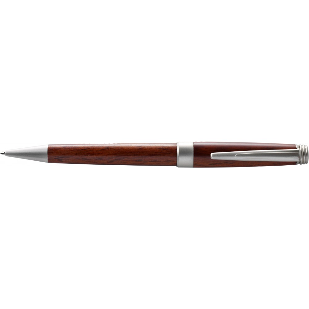 Rózsafa golyóstoll tolltartóban, fekete tollbetéttel.