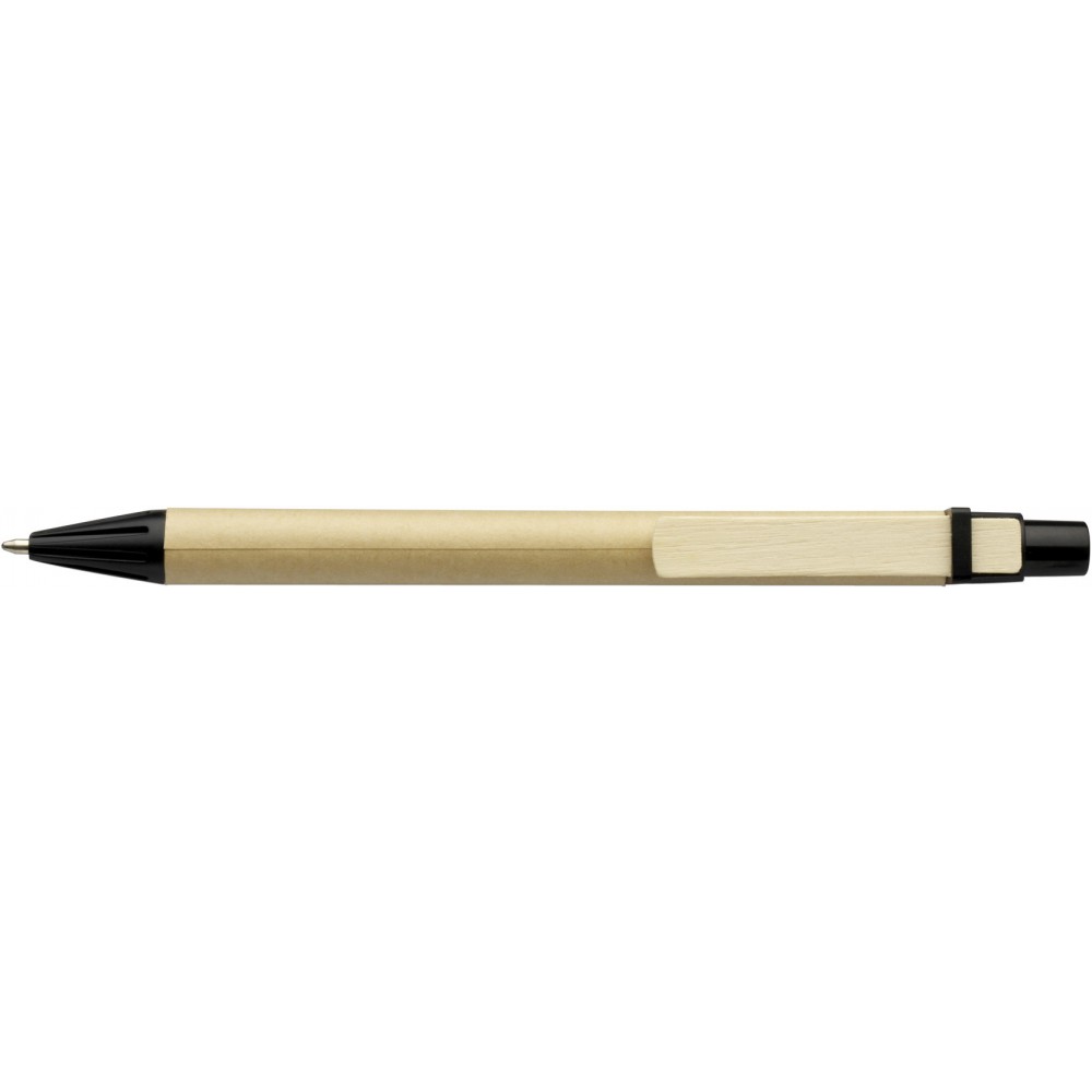 Karton golyóstoll fa klipsszel, biológiailag lebomló, színes kiegészítőkkel, kék tollbetéttel.