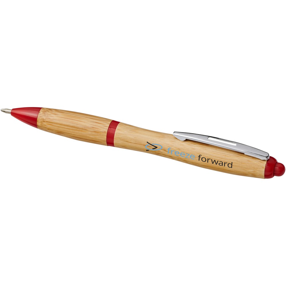 Golyóstoll nyomógombos mechanikával. Bambusz tolltest, króm klipsz, ABS műanyag. A bambusz természetes alapanyag, árnyalata darabonként változó lehet.