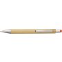 Bambusz golyóstoll műanyag kiegészítőkkel, fém klipsszel, fekete tollbetéttel.