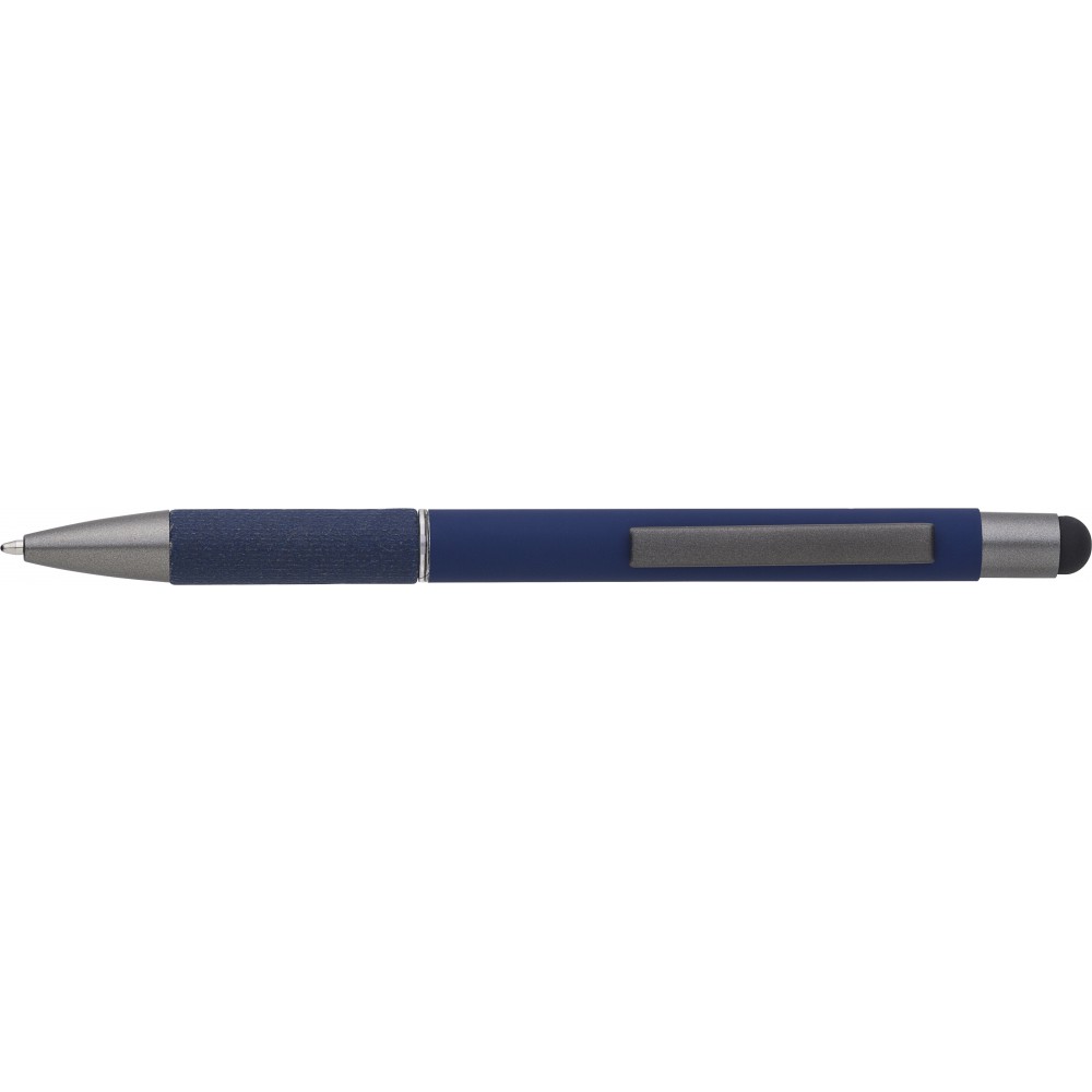 Alumínium golyóstoll érintővel, karton fogórésszel, kék tollbetéttel.