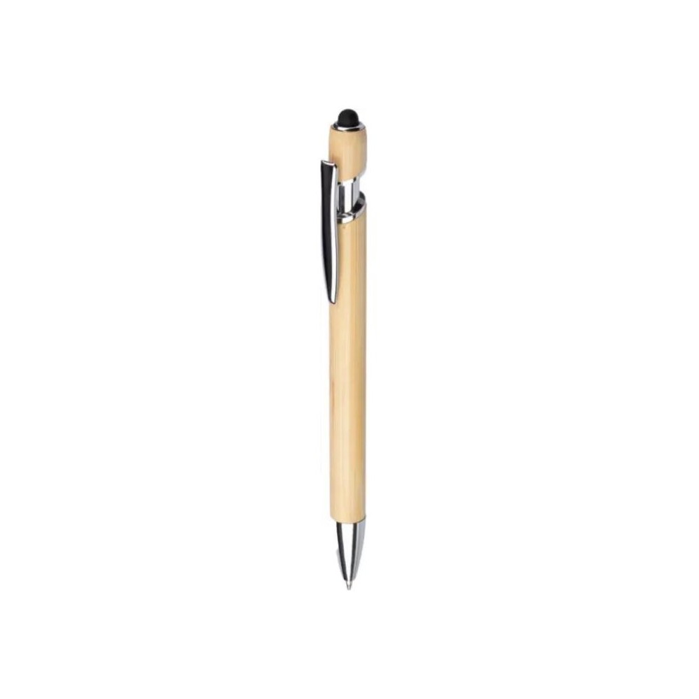 Bambusz golyóstoll érintővel és fém klipsszel. Kék tollbetéttel.