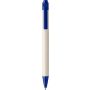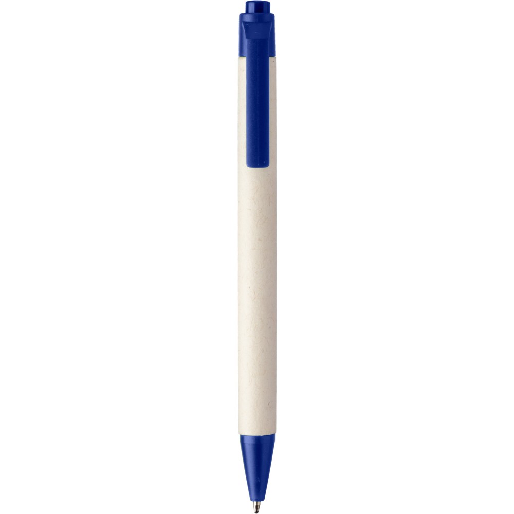 Újrahasznosított tejes kartonból készült golyóstoll újrahasznosított ABS műanyag részekkel. Újrahasznosított ABS logó és újrahasznosított tejes karton logó jelzi a felhasznált anyagok milyenségét. Kék tollbetéttel.