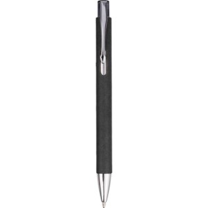 Újrahasznosított kartonból készült golyóstoll krómozott részletekkel. Műanyag tollhegy és nyomógomb, fém klipsz. Kb. 800 méter íráshossz. Fekete tollbetéttel.