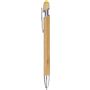 Bambusz golyóstoll krómozott fém részletekkel. Krómozott műanyag tollheggyel és fém klipsszel. Színes érintő a nyomógombon. Kb. 800 méter íráshossz. Kék tollbetéttel.