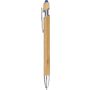 Bambusz golyóstoll krómozott fém részletekkel. Krómozott műanyag tollheggyel és fém klipsszel. Színes érintő a nyomógombon. Kb. 800 méter íráshossz. Kék tollbetéttel.