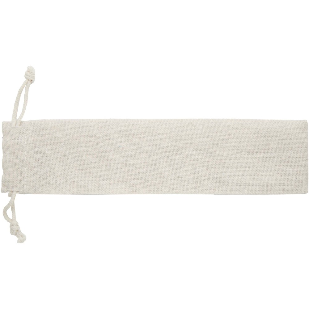 Root evőeszköz-készlet, amely egy villát, kést, kanalat, szívószálat és egy tisztítókefét tartalmaz. Az evőeszközök tartós és könnyen tisztítható rozsdamentes acélból, nyeleik pedig bükkfából készültek. Pamut tasakban szállítjuk.