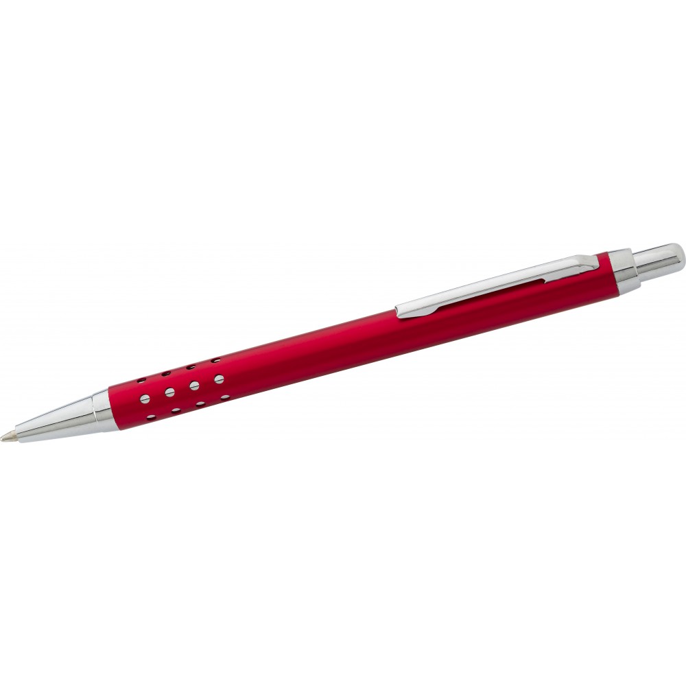 Alumínium golyóstoll krómozott, műanyag nyomógombbal és heggyel, kék tollbetéttel
