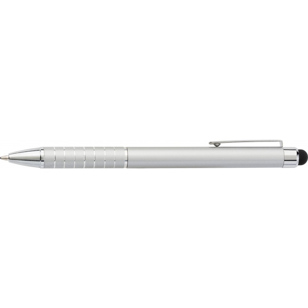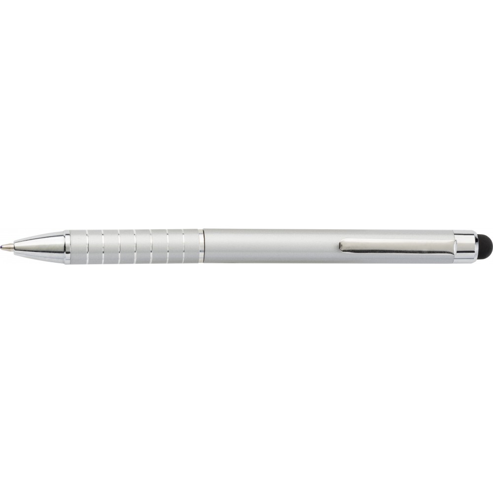 Lakkozott felületű alumínium golyóstoll érintővel, kék tollbetéttel.