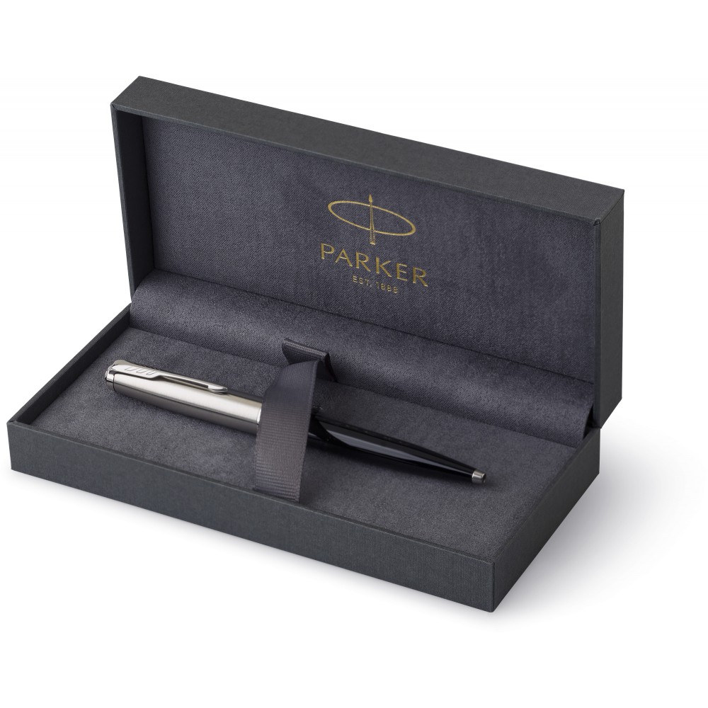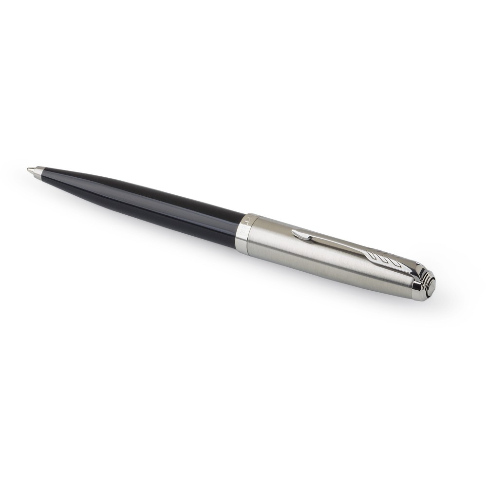 Parker 51 rozsdamentes acél golyóstoll fekete tollbetéttel, díszdobozban.