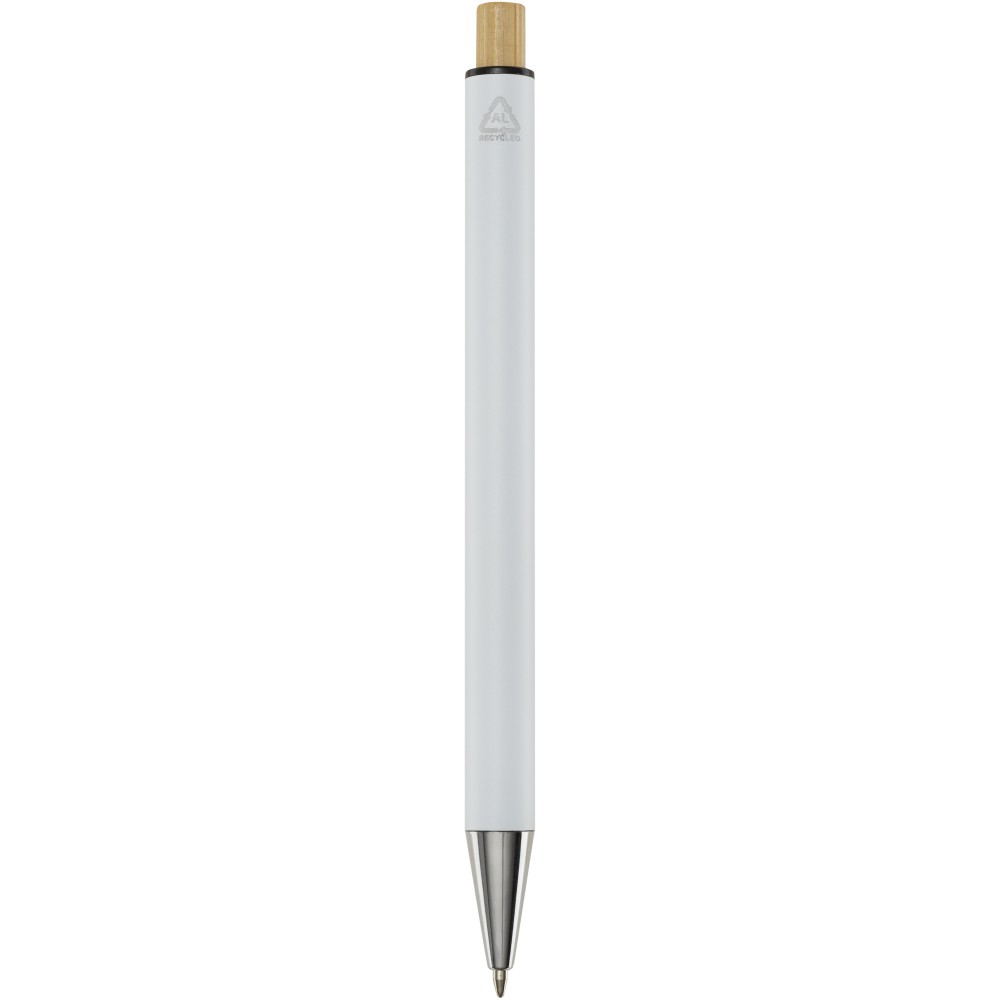 A Cyrus golyóstoll újrahasznosított alumíniumból készül, ami kevesebb energiát igényel, mint az alumínium nyersanyagból történő előállítása. Emellett csökkenti a hulladéklerakókba kerülő hulladék mennyiségét és hozzájárul a természeti erőforrások megőrzéséhez, amelynek célja az üvegházhatású gázok kibocsátásának csökkentése. A nyomógomb bambuszból készült. Tollbetét színe: fekete. Íráshossz: 800 méter. Tollhegy mérete: 1,00 mm.