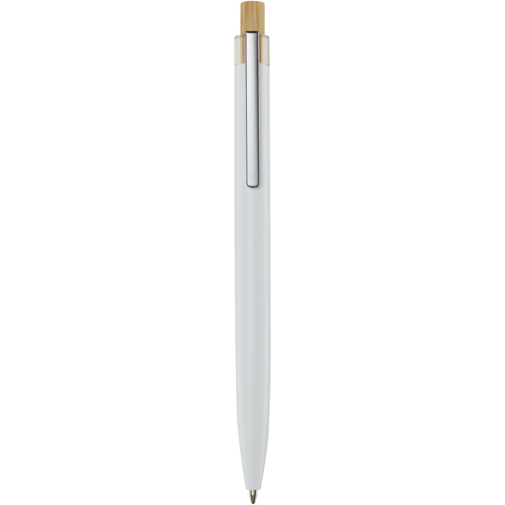 A Nooshin golyóstoll újrahasznosított alumíniumból készül, ami kevesebb energiát igényel, mint az alumínium nyersanyagból történő előállítása. Emellett csökkenti a hulladéklerakókba kerülő hulladék mennyiségét és hozzájárul a természeti erőforrások megőrzéséhez, amelynek célja az üvegházhatású gázok kibocsátásának csökkentése. A nyomógomb bambuszból készült. Tollbetét színe: fekete. Íráshossz: 800 méter. Tollhegy mérete: 1,00 mm.