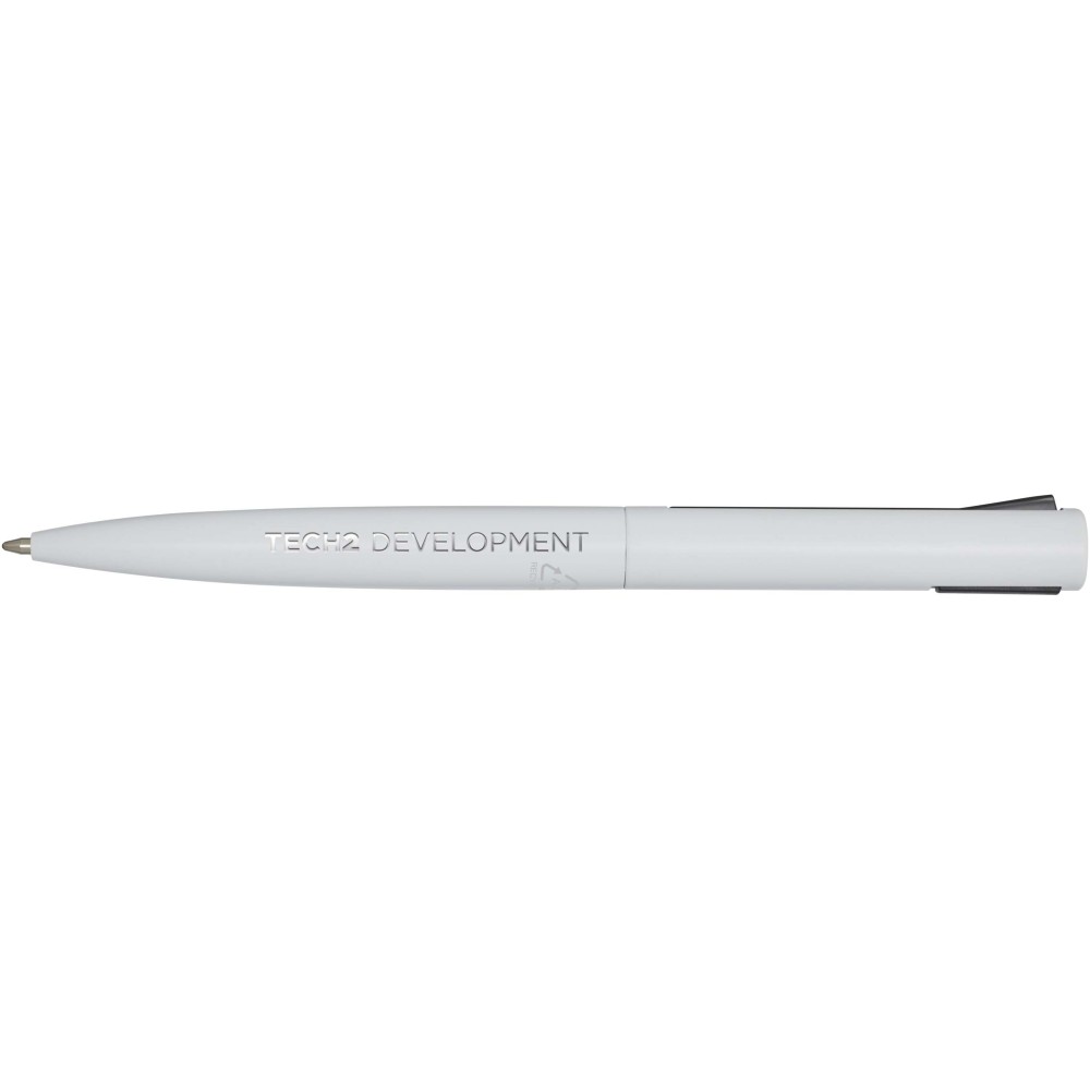 Golyóstoll, melynek felső teste újrahasznosított műanyagból, alsó része pedig újrahasznosított alumíniumból készült. A klipsz vasból készült. Kék tollbetéttel. Írási hossz: 1000 méter. Hegyméret: 1,0 mm.
