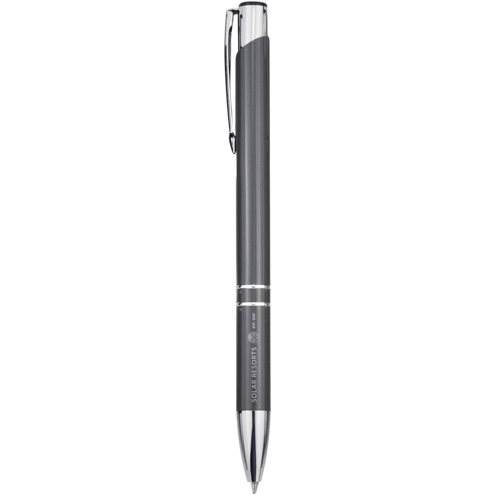 Golyóstoll újrahasznosított alumíniumból, lakkozott felülettel és króm részletekkel. Az újrahasznosított alumínium csökkenti a hulladéklerakók terhelését, segít megőrizni a természeti erőforrásokat és hozzájárul az üvegházhatású gázok kibocsátásának csökkentéséhez. Tinta színe: kék. Íráshossz: 1000 méter. Tollhegy mérete: 1,0 mm.