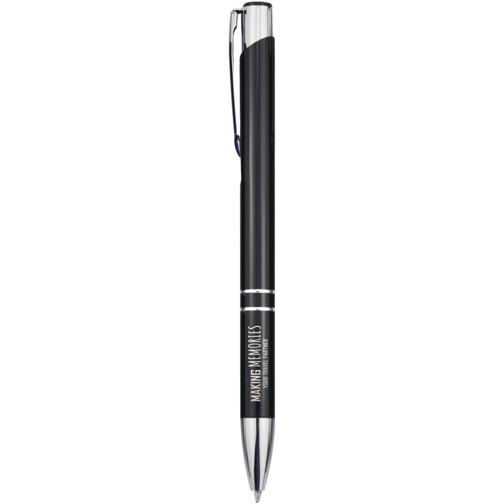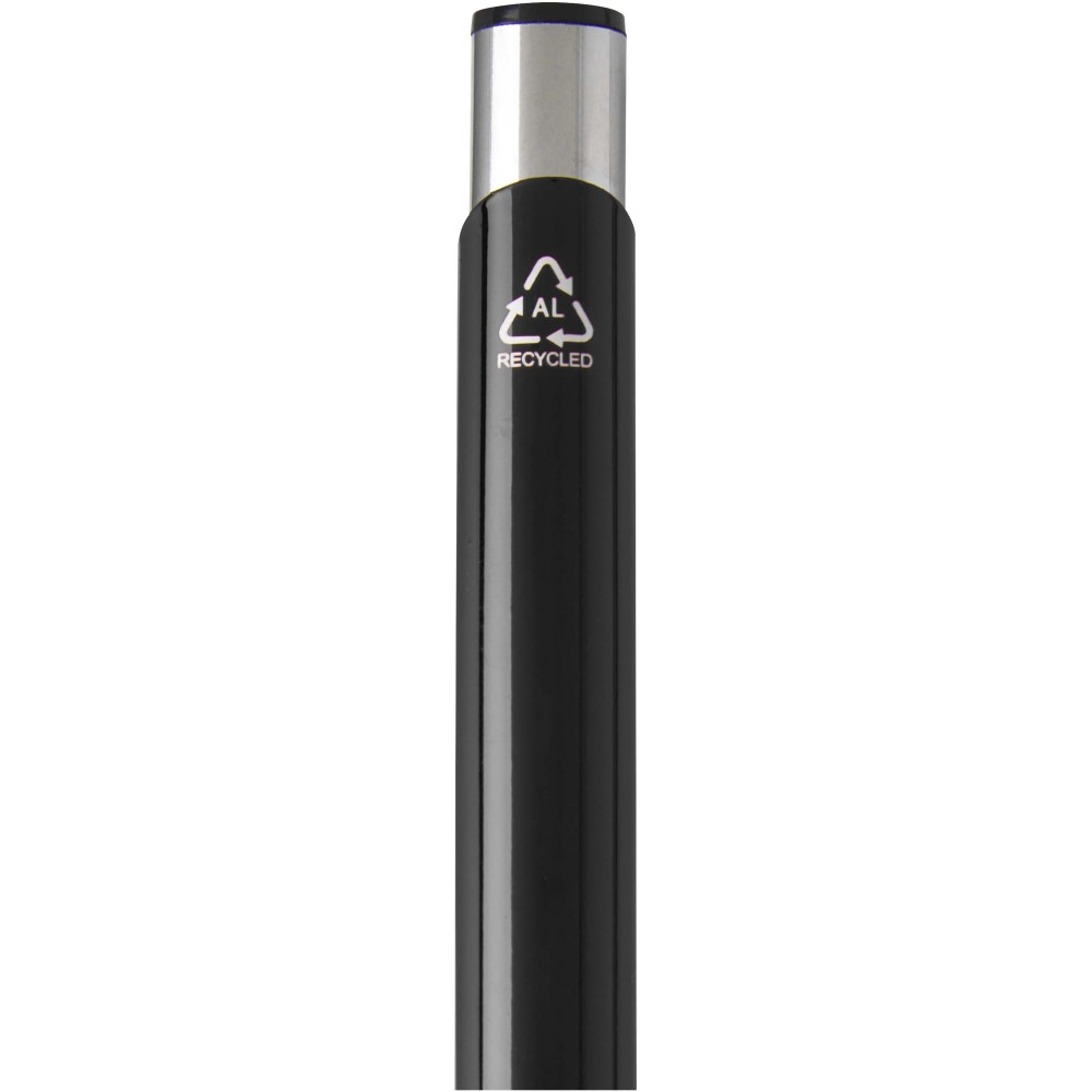 Golyóstoll újrahasznosított alumíniumból, lakkozott felülettel és króm részletekkel. Az újrahasznosított alumínium csökkenti a hulladéklerakók terhelését, segít megőrizni a természeti erőforrásokat és hozzájárul az üvegházhatású gázok kibocsátásának csökkentéséhez. Tinta színe: kék. Íráshossz: 1000 méter. Tollhegy mérete: 1,0 mm.