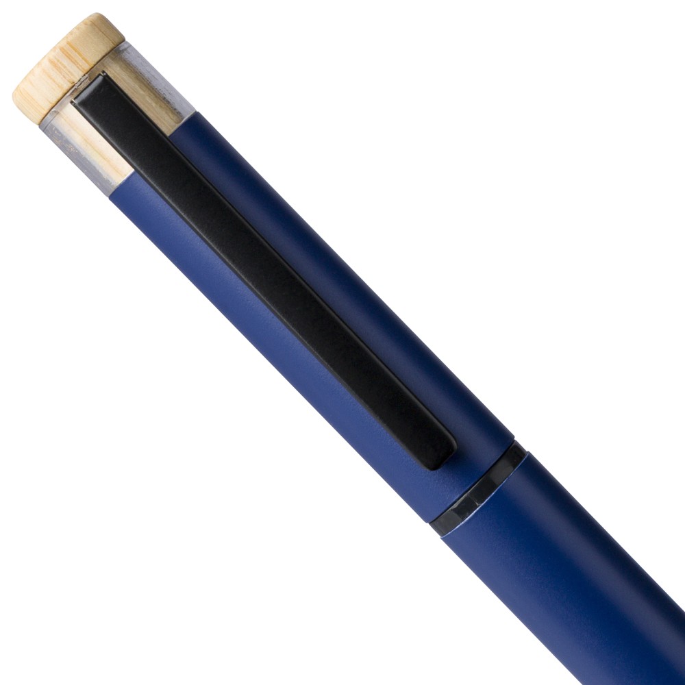 Újrahasznosított alumíniumból készült, lakkozott tollszett golyóstollal és rollerball tollal. A golyóstoll bambusz nyomógombbal, rPET díszítéssel és fém klippel rendelkezik, míg a rollerball toll bambusz/rPET kupakdíszítéssel és hozzá illeszkedő klippel. A tolltesten gravírozott recycled (újrahasznosított) alapanyagra utaló logó található mindkét toll esetében. A golyóstoll kb. 700 méter, a roller toll kb. 500 méter íráskapacitású, mindkettő kék színű tollbetéttel. Színes, újrahasznosított kartonból készült ajándékdobozba csomagolva.