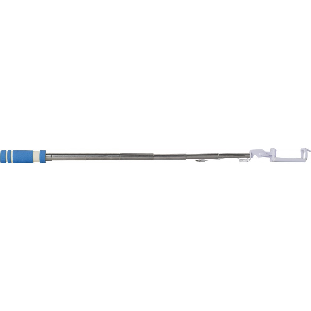 Teleszkópos szelfibot, 61 cm-ig kihúzható nyéllel, EVA hab fogóval, nyomógombbal, kb. 33 cm-es csatlakozókábellel. ABS műanyag.