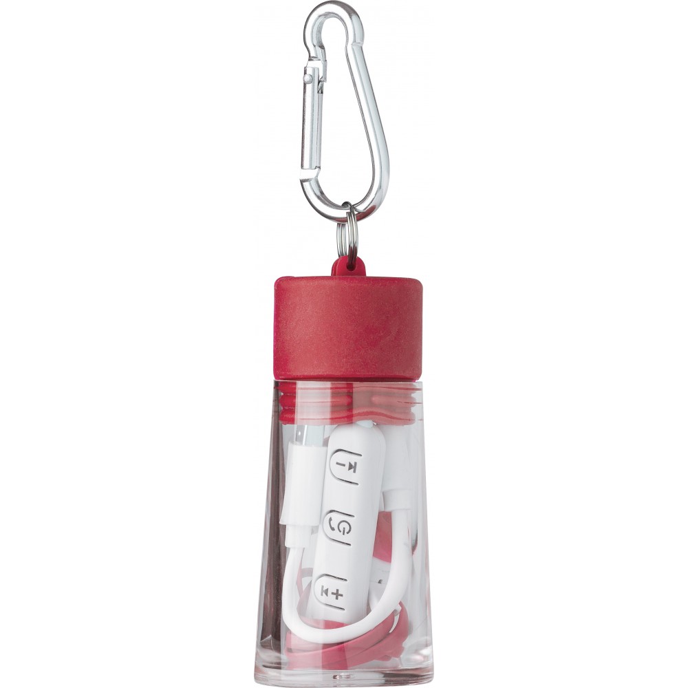 Bluetooth fülhallgató tartóval, piros