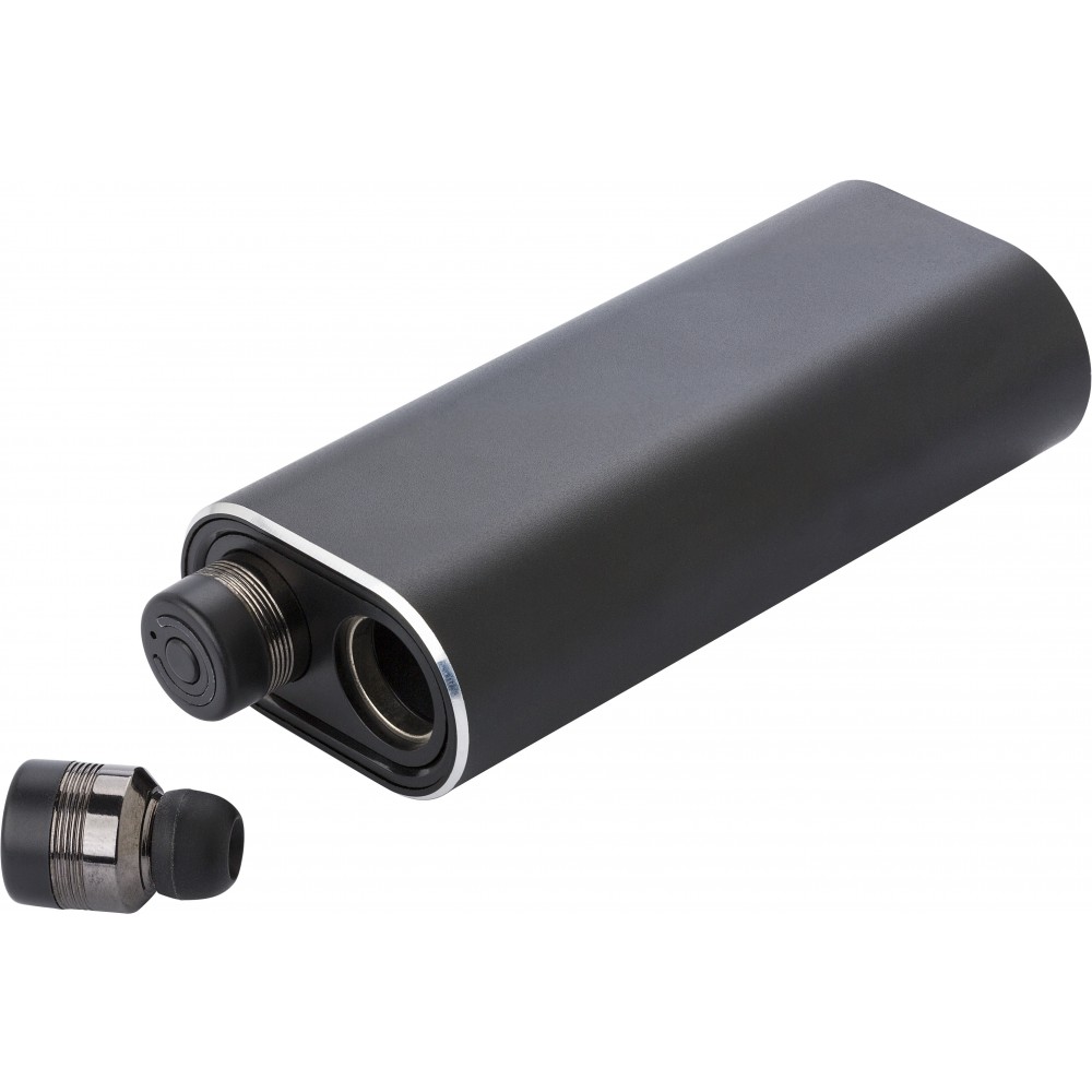 Powerbank fülhallgatóval, fekete