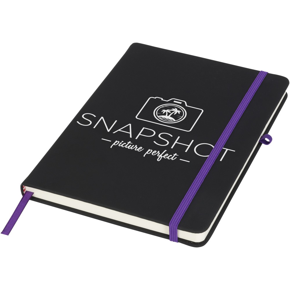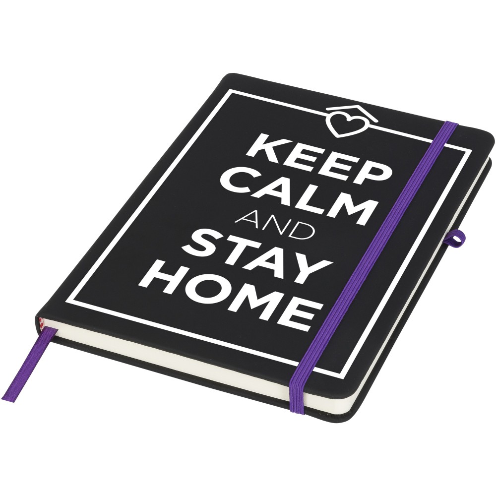 Puha felületű füzet színes gumipánttal, könyvjelzővel és tullhurokkal. 96 krémszínű vonalas lapot tartalmaz.