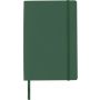 Puhafedelű, hajlékony borítójú füzet 80 vonalas lappal, a borító belsejében zsebbel, gumis záródással és könyvjelzővel. PU.