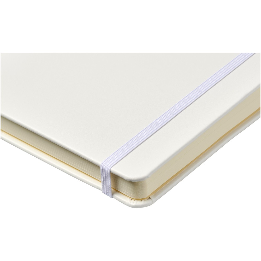 Műbőr A5-ös (14,2 cm x 21,4 cm) jegyzetfüzet gumiszalaggal, szalagjelölővel, tollhurokkal és harmonika hátsó zsebbel. 96 db vonalas krémszínű lapot tartalmaz (80 g/m2).