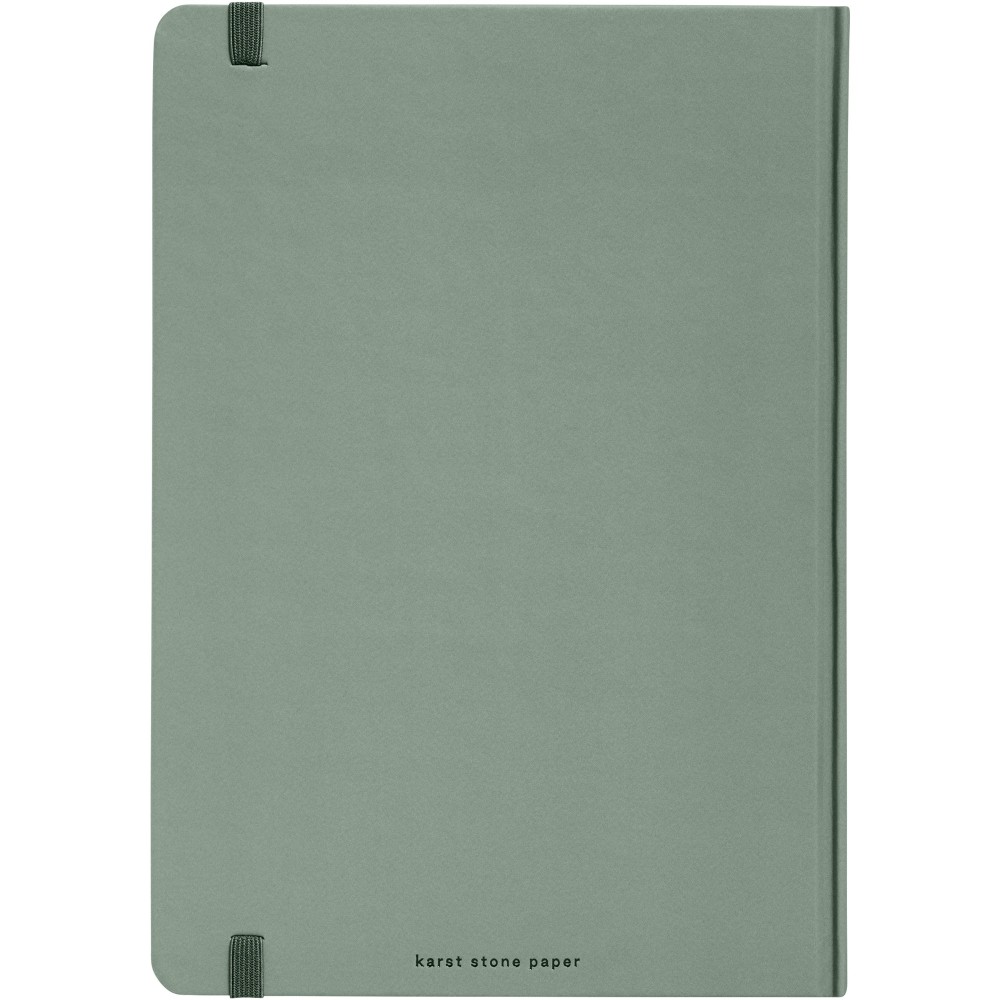 Karst A5 keményfedeles füzet. Az oldalak sima textúrája és a lapos kötészet bőséges kényelmet és íróteret biztosít jegyzetei számára. Elasztikus pánt, 144 vízálló, szakadásálló vonalas lap, kibővíthető hátsó zseb a tároláshoz, valamint könyvjelző és lekerekített sarkok.