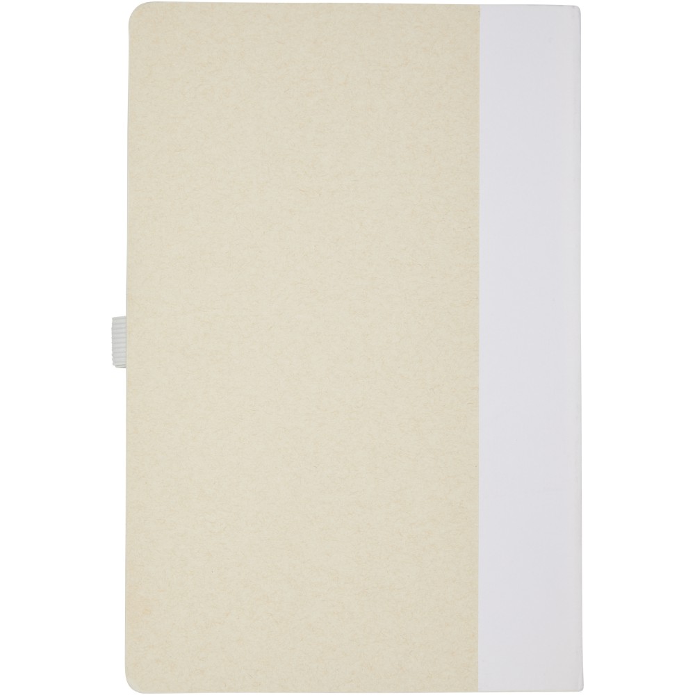 A5 méretű füzet és golyóstoll készlet. A jegyzetfüzet 80 vonalas lapot (80 g/m2) tartalmaz, amelyek újrahasznosított tejes kartondobozokból készülnek (akár 70%), színes papírgerinccel és egy tollhurokkal. A tollhurokban egy nyomógombos golyóstoll található a jegyzetfüzet színéhez illő színben. A toll teste ugyanabból az újrahasznosított anyagból készült, a gomb, a klipsz és a hegy pedig színes PLA műanyagból készült. A toll fekete tollbetéttel érkezik. A használt tejesdobozokat összegyűjtik, válogatják, feldolgozzák és papírrá alakítják, így a hulladékból hasznos termék készül.